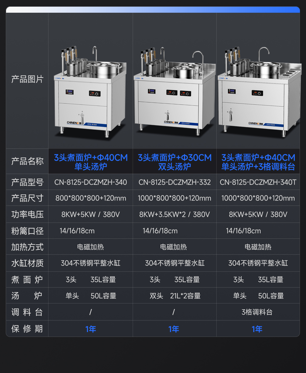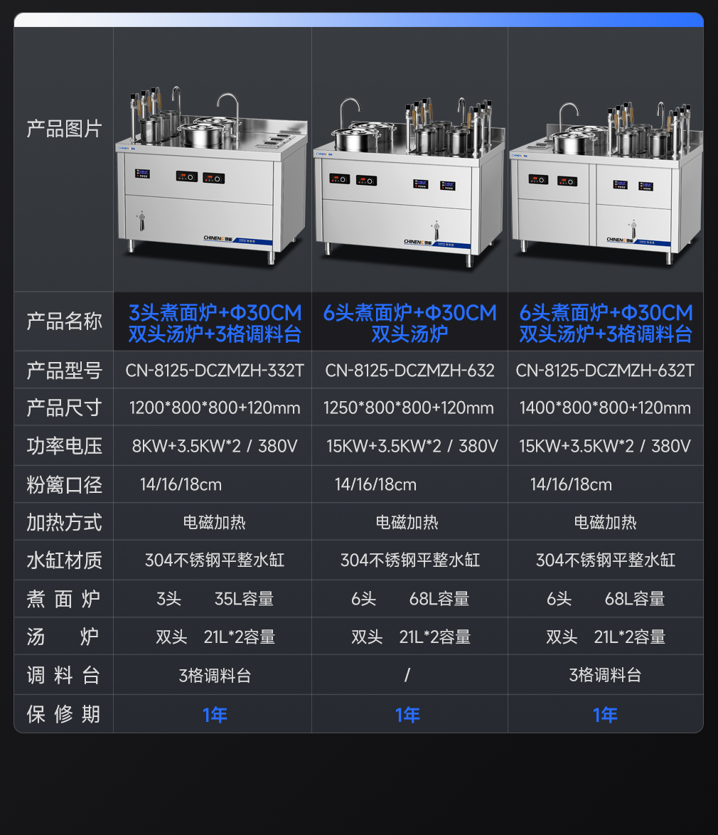 功率/電壓:8KW/380V(煮面爐) 5KW/380V(煲湯爐)